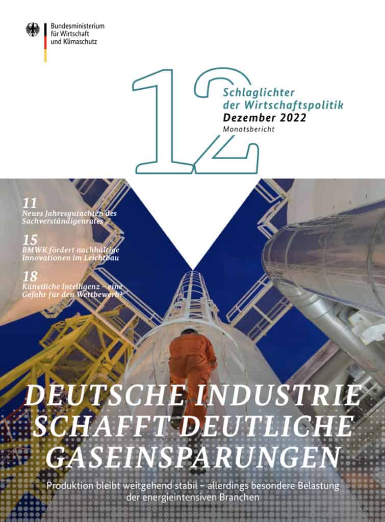 Schlaglichter der Wirtschaftspolitik Ausgabe Dezember 2023 Im Fokus dieser Ausgabe steht die Industriestrategie des BMWK. Deutschland ist ein starkes Industrieland – im europäischen, aber auch im weltweiten Vergleich. Diese Stärke wollen wir bewahren und ausbauen. Wir beleuchten, welche Herausforderungen, Handlungsfelder und -bedarfe wir mit der Strategie in den Mittelpunkt unserer Industriepolitik rücken. In Europa unterscheiden sich die zu erwartenden Auswirkungen des Klimawandels, die daraus erwachsenden Risiken und die aufgrund dieser Risiken von der Wirtschaft zu tragenden Kosten für Investitionen von Land zu Land sehr stark. Die Bundesregierung setzt sich dafür ein, dassKlimarisiken in der wirtschaftspolitischen Koordinierung der Europäischen Union künftig stärker berücksichtigt werden. Wir berichten. Digitale Technologien leisten einen wichtigen Beitrag zum Klima- und Umweltschutz. Mit dem„GreenTech Innovationswettbewerb“ fördern wir innovative grüne Technologieprojekte. Das Programm, das wir in dieser Ausgabe betrachten, hat zum Ziel, Deutschland und Europa als Hightech-Standorte für digitale Technologien und darauf basierende Geschäftsmodelle zu stärken. Außerdem stellen wir die Ergebnisse der Konsultation zur Wohlfahrtsmessung im Jahreswirtschaftsbericht der Bundesregierung und die Neuausrichtung des außenwirtschaftlichen Förderinstruments „Partnering in Business with Germany“ vor und berichten wieder ausführlich zur Konjunktur. Quelle:https://www.bmwk.de/Redaktion/DE/Publikationen/Schlaglichter-der-Wirtschaftspolitik/schlaglichter-der-wirtschaftspolitik-12-2023.html Ausgaben 2022/23 Zurück