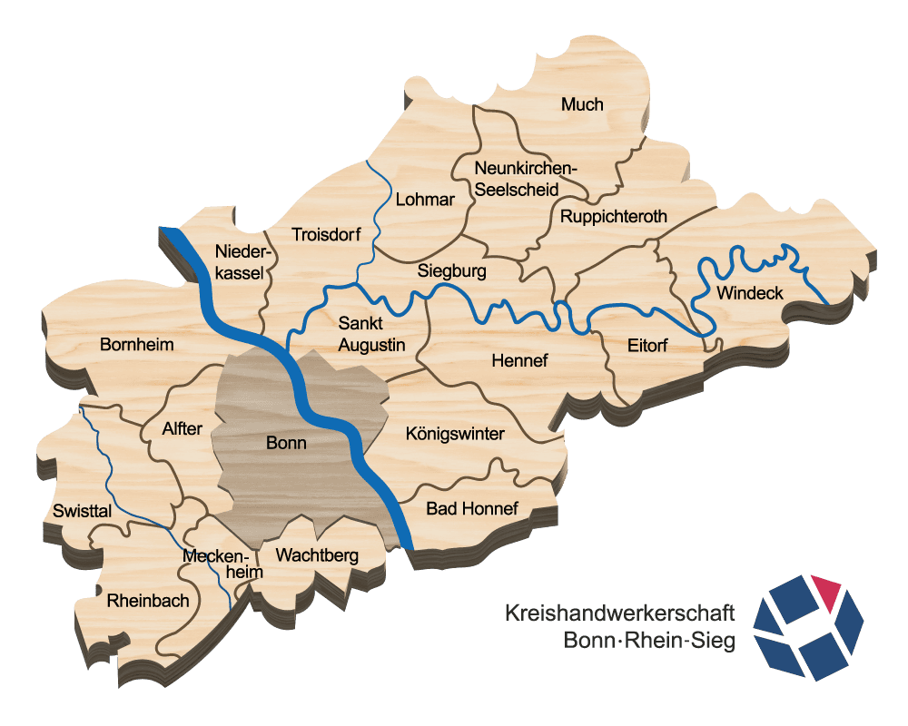Als Körperschaft des öffentlichen Rechts ist die Kreishandwerkerschaft Bonn•Rhein-Sieg das organisatorische Dach und die gemeinsame Geschäftsstelle der angeschlossenen Innungen.